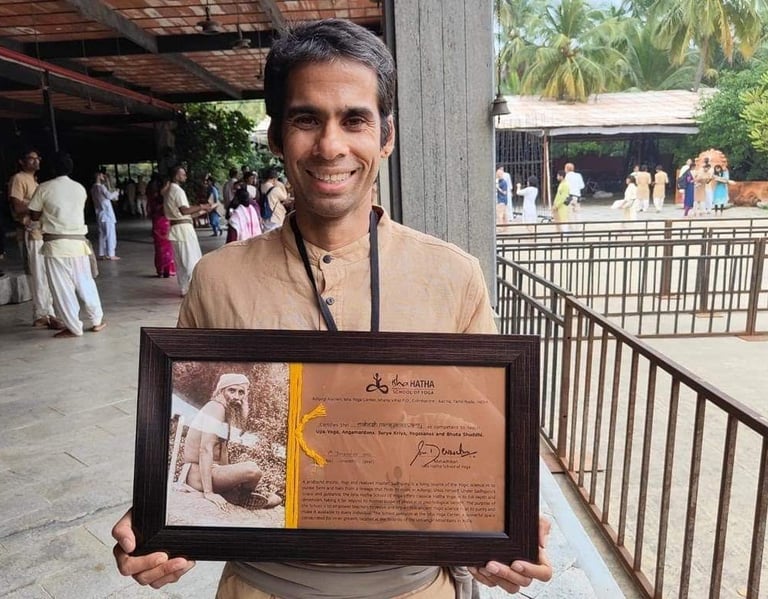 I'm a certified Hatha Yoga Teacher from Isha Hatha School of Yoga and completed my 21 week yoga certification in 2022.